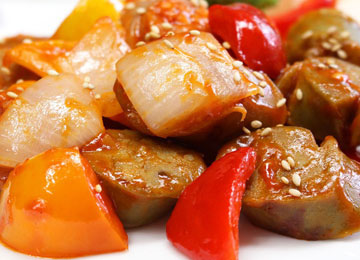 χωριάτικο πικάντικο λουκάνικο με λαχανικά.